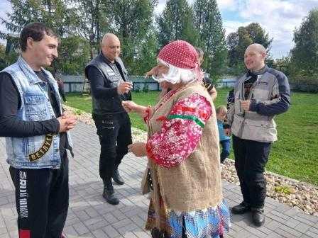 Во время встречи мы не только обменивались историями о мотоциклах и путешествиях, не только говорили о важности соблюдения правил дорожного движения, но и провели вместе время, полное смеха и веселья. Хитрая Баба-Яга устроила веселые состязания на свежем воздухе.